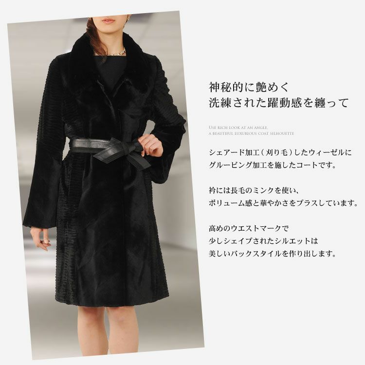 シェアードウィーゼル ロングコート ミンク トリミング 7F