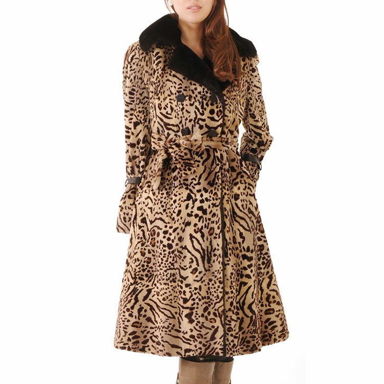 シェアード ウィーゼル コート ミンク トリミング ベルト付 7F