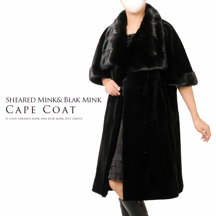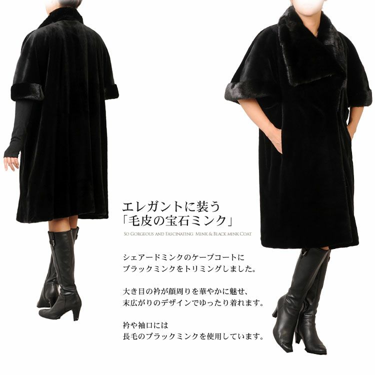 シェアードミンク ケープコート ブラックミンク トリミング 7F