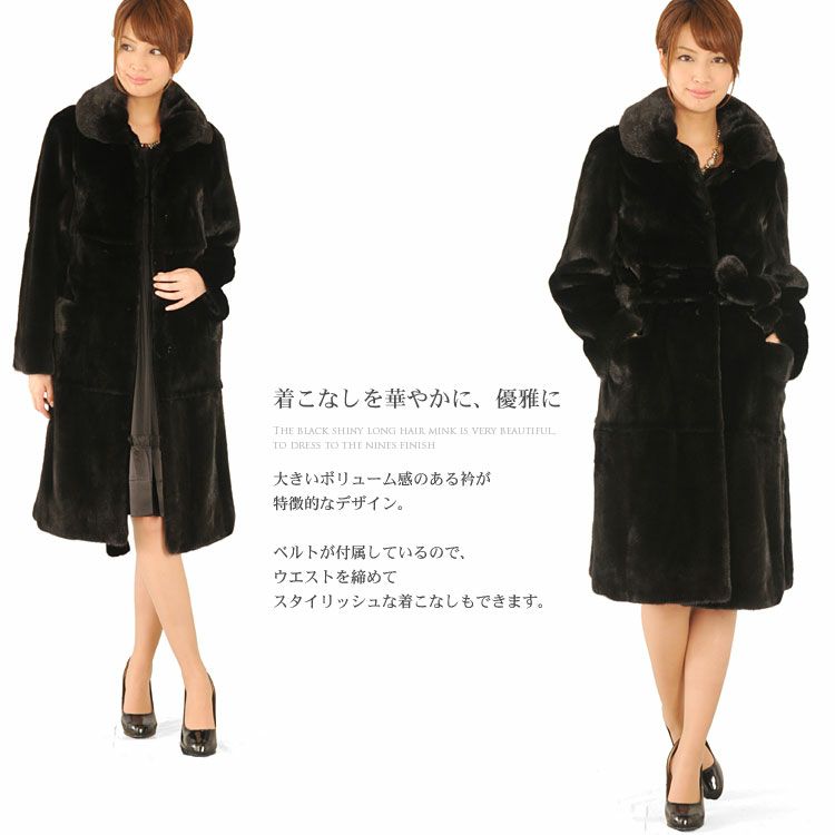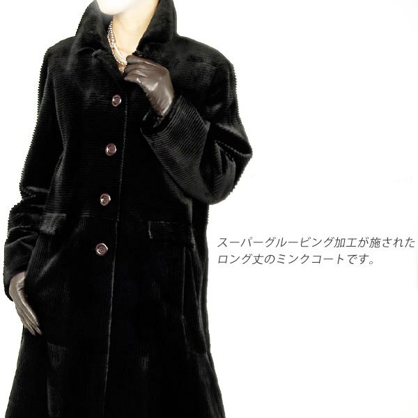 ミンク ロングコート スーパーグルービング加工 ROBERTO VALENTINO 120cm ブラック 7F
