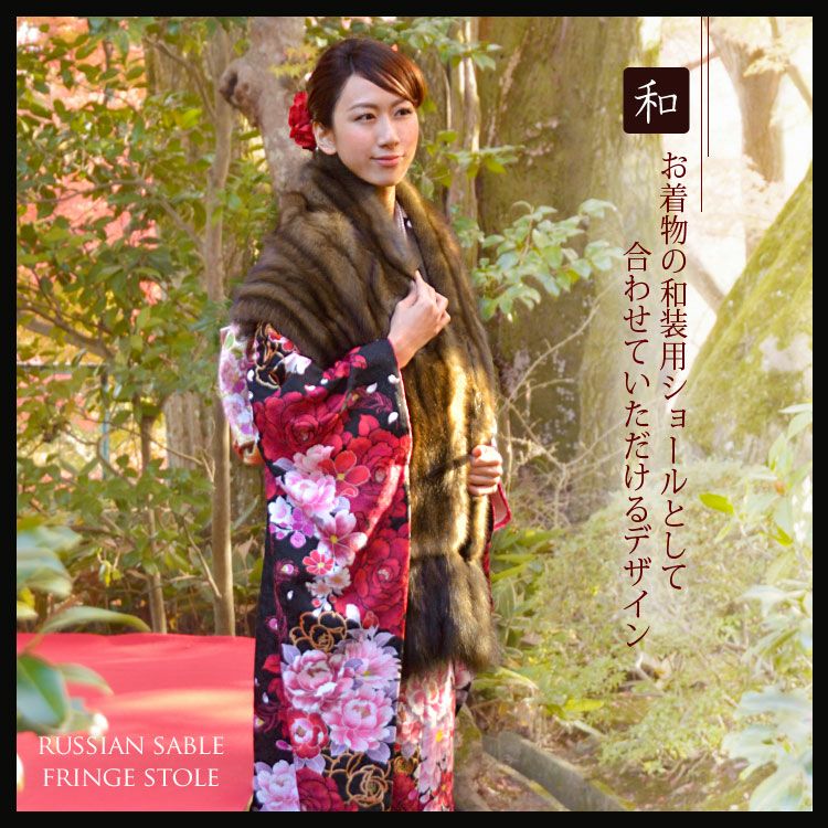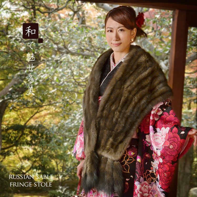 着物 和装 振袖 ショール ストール ロシアン セーブル 10用 フリンジ付き