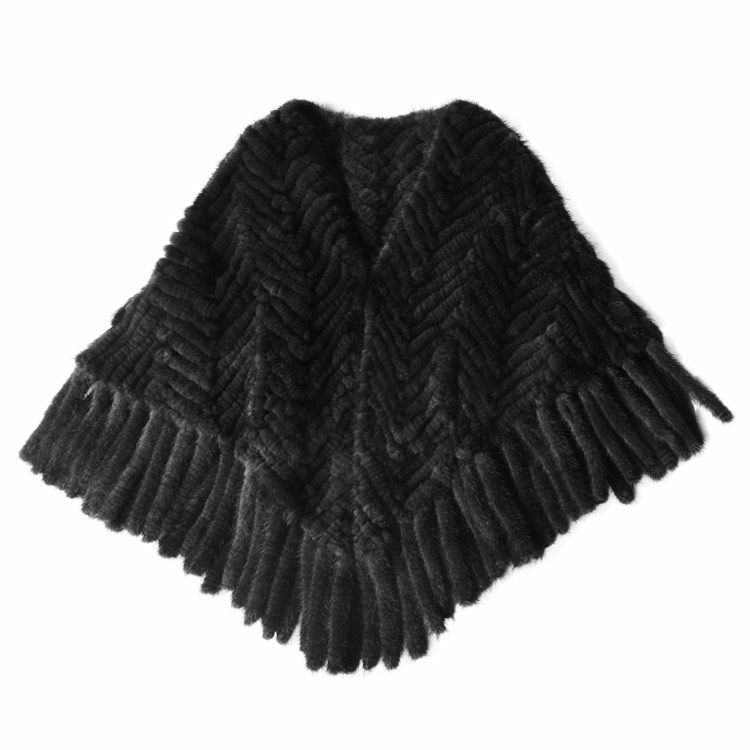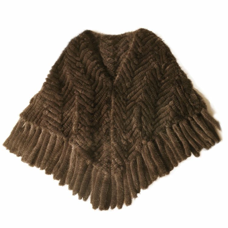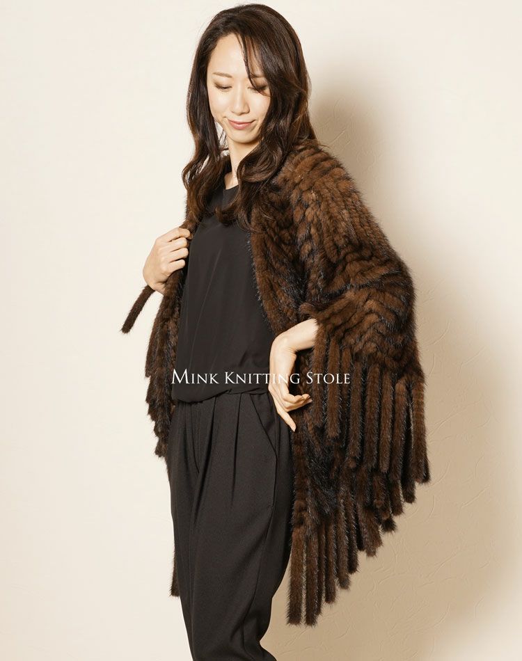 ミンク ファー ストール 編み込み 三角 フリンジ付き 大判 レディース (308096r) 7F