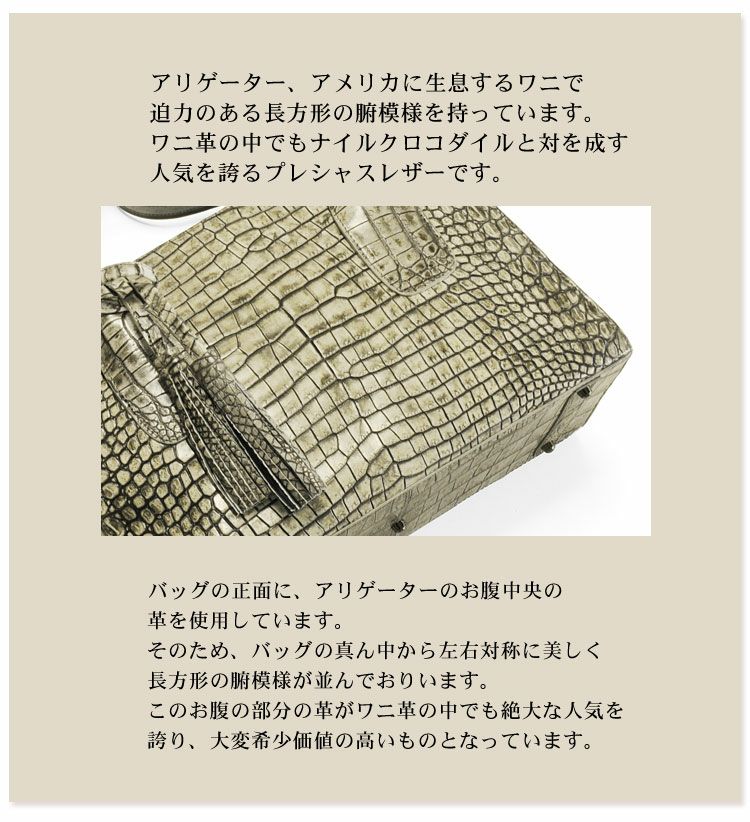 他の画像を見る exotic leather アリゲーター トートバッグ マット 加工 センター取り / 2WAY 仕様 / レディース 『クロコダイル保証書付き』 4FA ¥ 187,000 税込 (0件) お気に入りに登録する