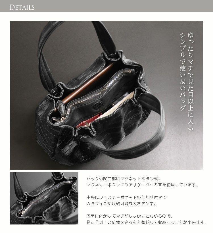 他の画像を見る exotic leather アリゲーター ハンドバッグ ハイシャイニング 目地染め レディース 『クロコダイル保証書付き』 4FA ¥ 165,000 税込 (0件) お気に入りに登録する