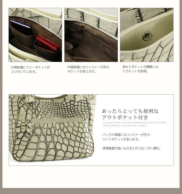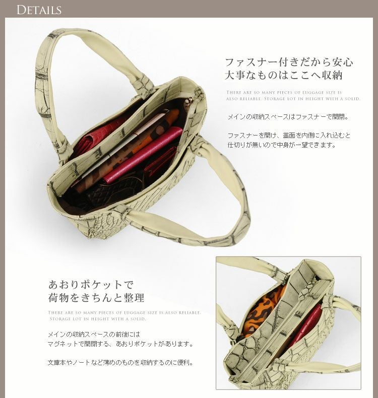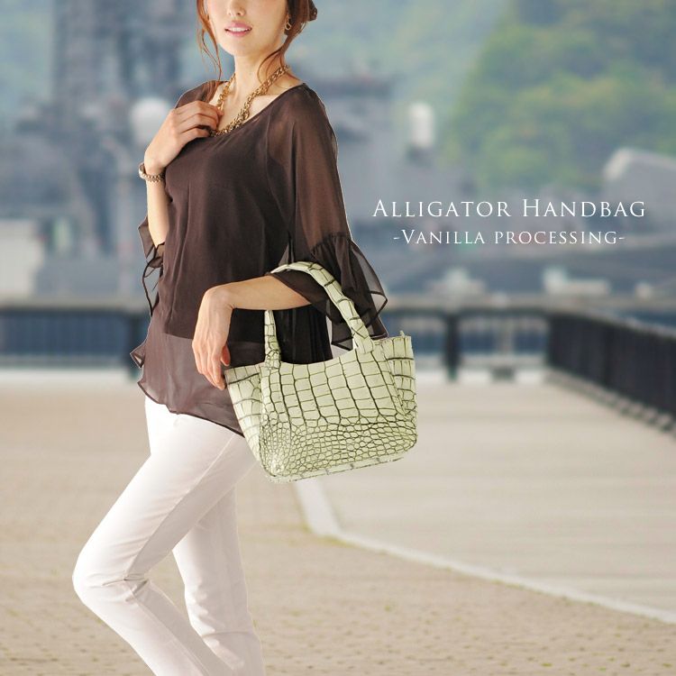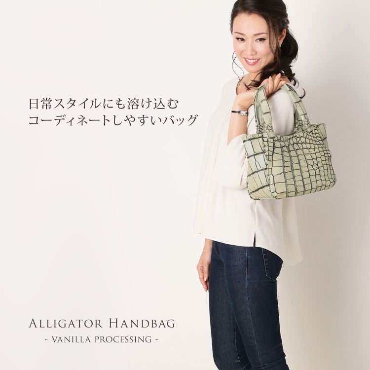| 商品名:アリゲーター ハンドバッグ マット加工 バニラ染め 日本製 |
