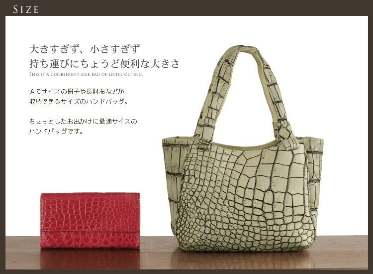 天然皮革 エキゾチックレザー 日本製 アリゲーター ハンドバッグ マット加工 バニラ染め 安心 保証書 付き レディース 鞄 本革 革 ワニ革 手提げバック 女性用 母 女性 プレゼント ギフト ladiesbag