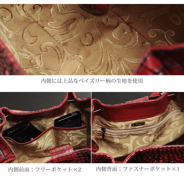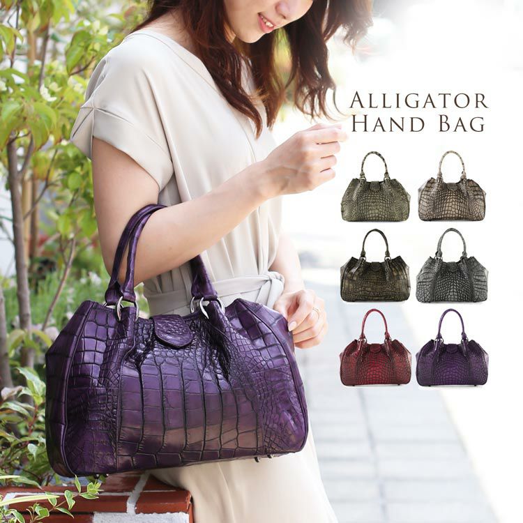 | 商品名:アリゲーター ハンドバッグ ハイシャイニング 目地染め レディース |