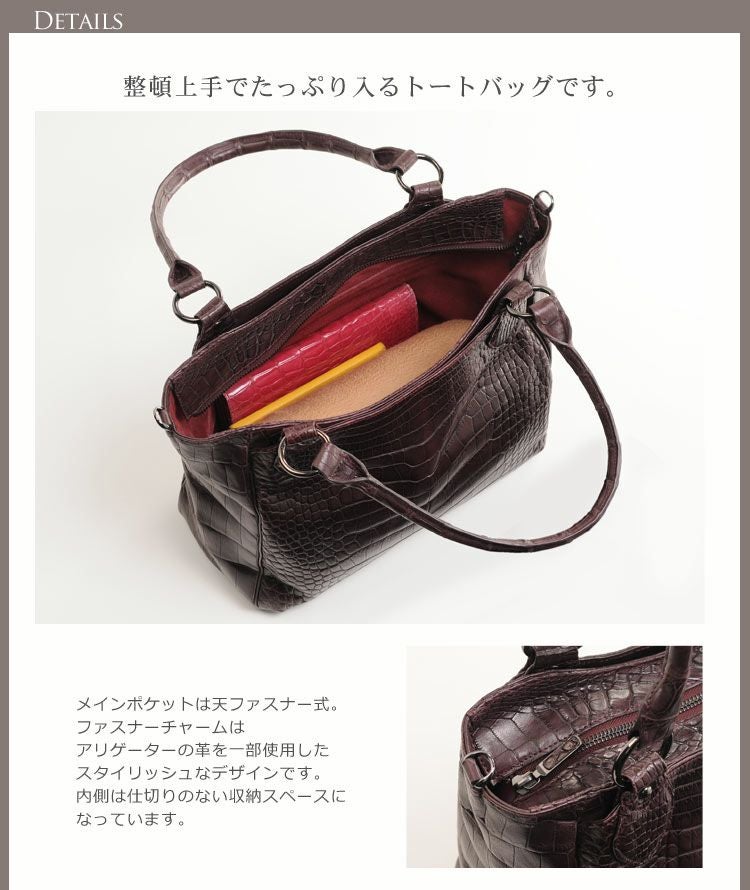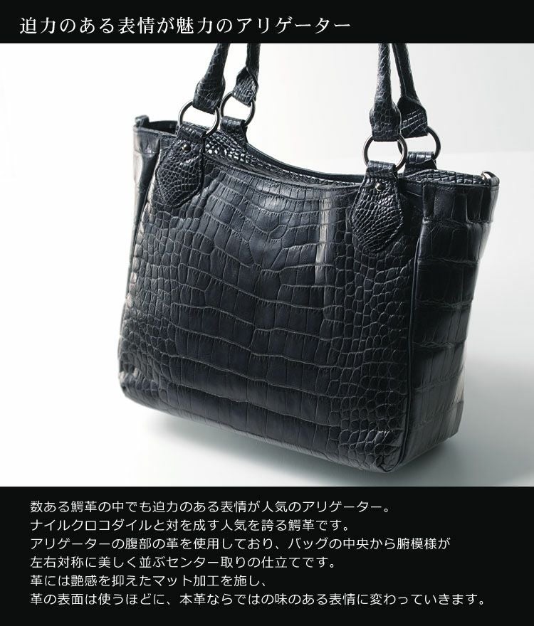 | 商品名:アリゲーター トートバッグ マット 加工 センター取り / 2WAY 仕様 / レディース |
