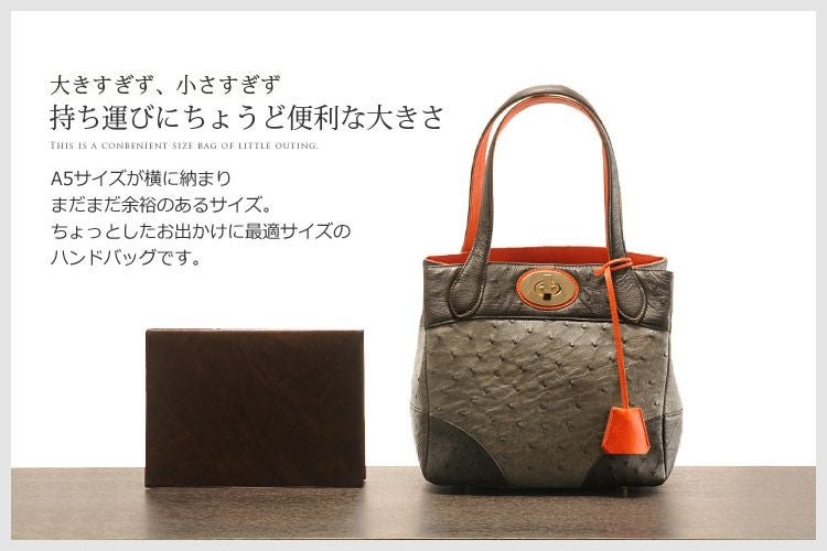 | 商品名:オーストリッチ ハンドバッグ レディース 本革 キューブバッグ キーホルダー付き |