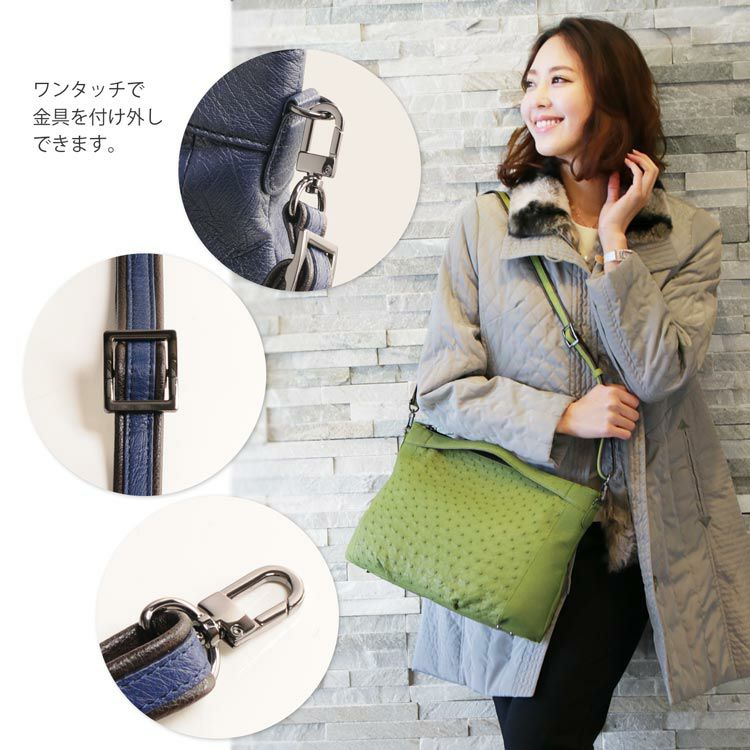 オーストリッチ ショルダー ハンドバッグ レディース 2way