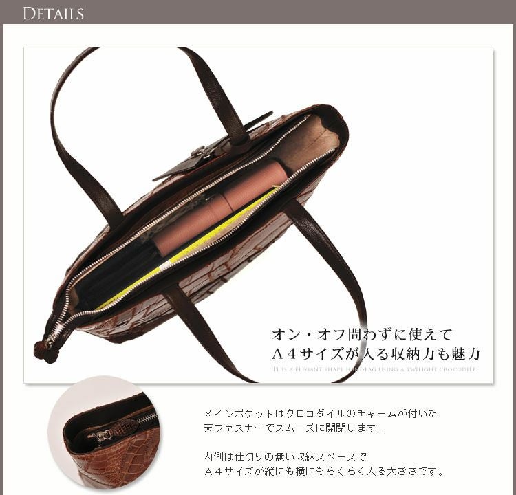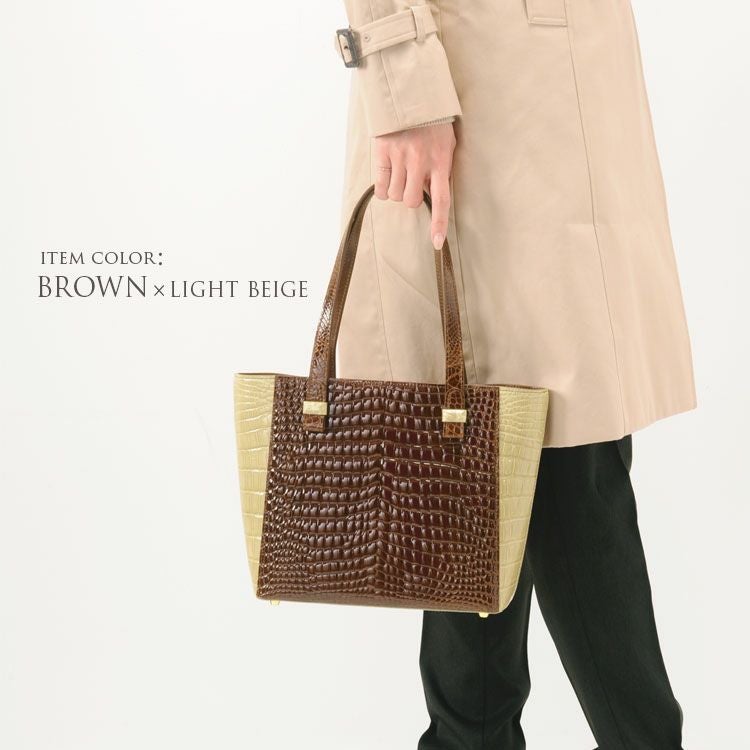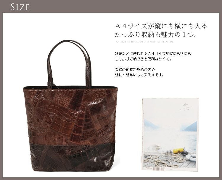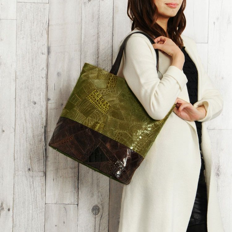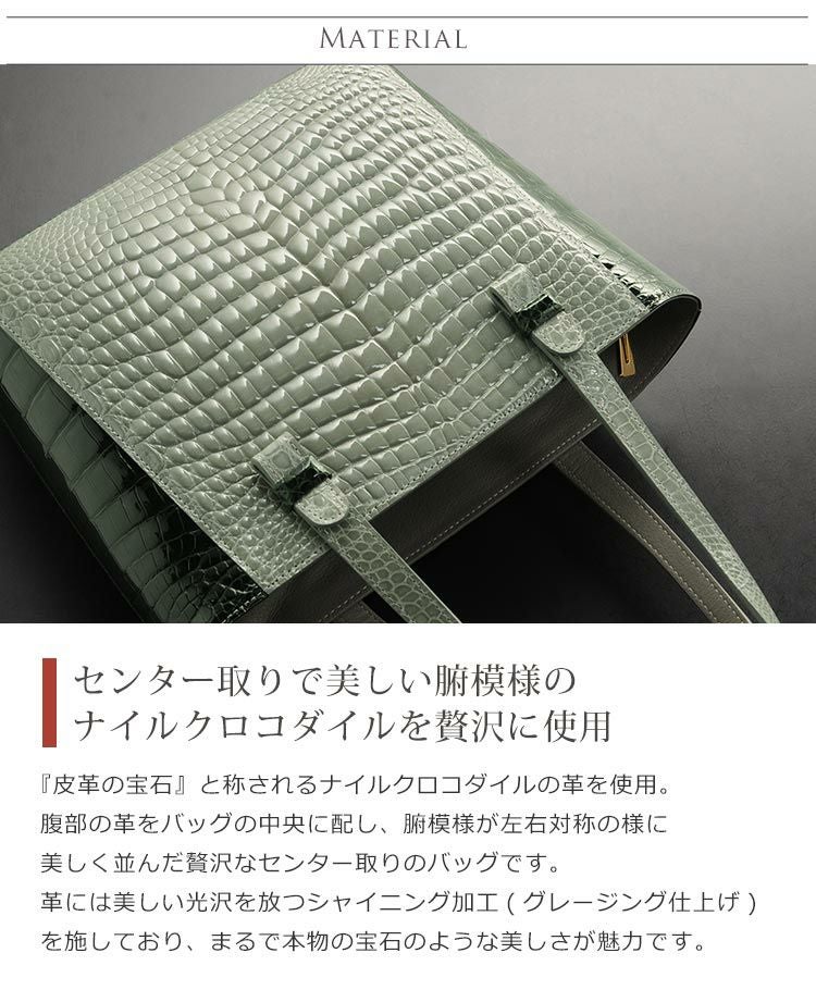 クロコダイル シャイニング 目地染め トート バッグ 日本製 レディース 『クロコダイル保証書付き』 4FA