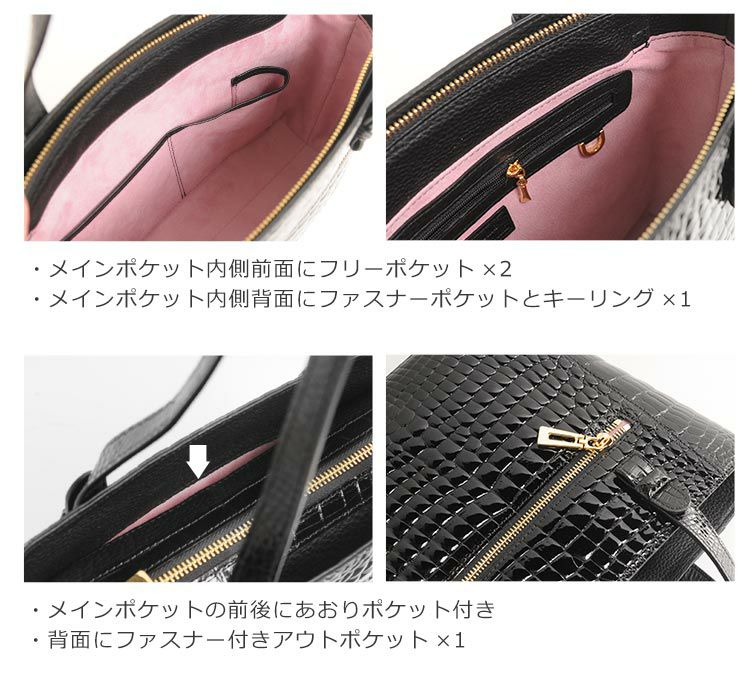 クロコダイル トートバッグ レディース シャイニング 加工 肩掛け あおりポケット 付き 全8色『クロコダイル保証書付き』 4FA