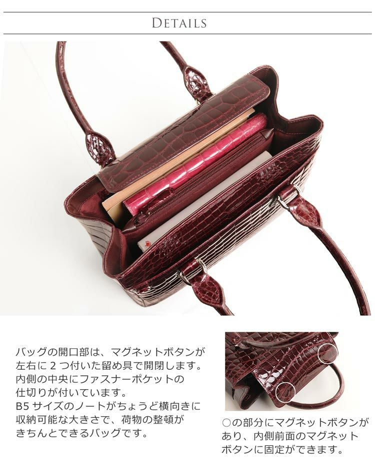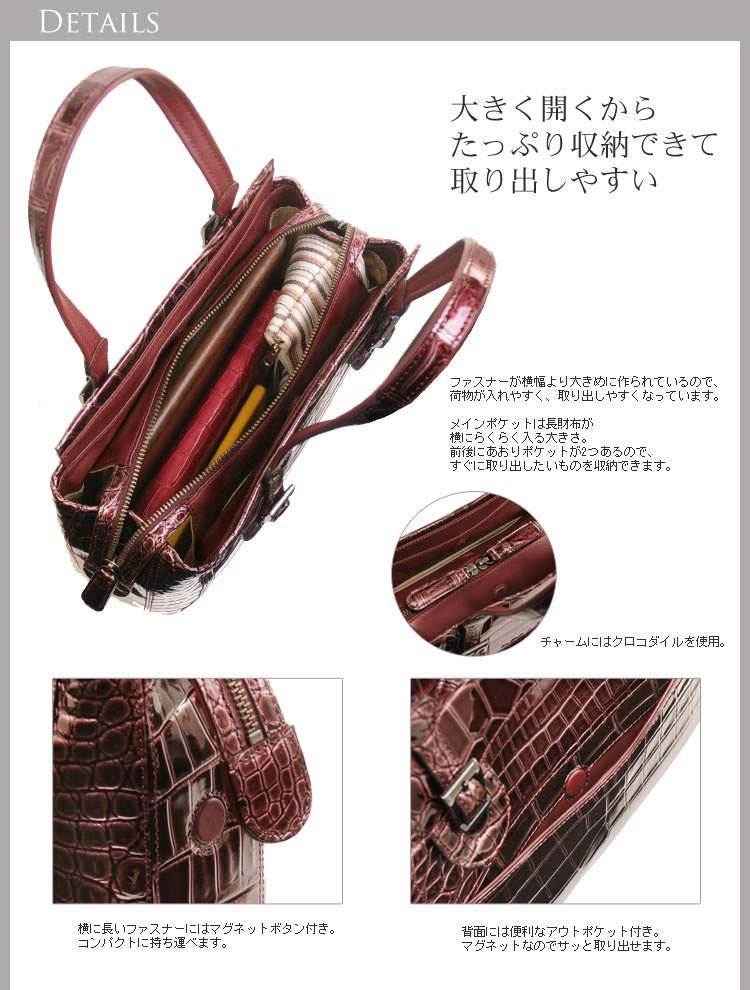 他の画像を見る exotic leather クロコダイル ハンドバッグ レディース シャイニング 加工 センター取り 2WAY 仕様 全6色『クロコダイル保証書付き』 4FA ¥ 184,800 税込 (0件) お気に入りに登録する