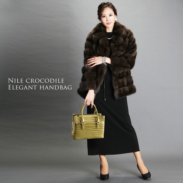 クロコダイル ハンドバッグ シャイニング 加工 センター取り ポーチ付き 2WAY レディース 『クロコダイル保証書付き』 4FA