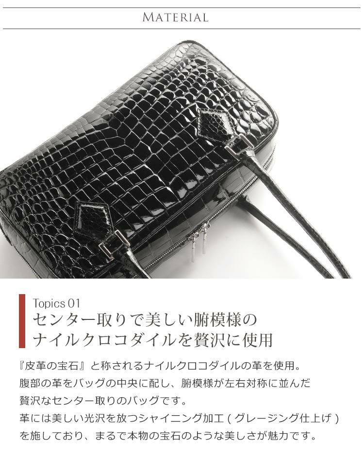 クロコダイル ハンドバッグ シャイニング 加工 センター取り 『クロコダイル保証書付き』 4FA