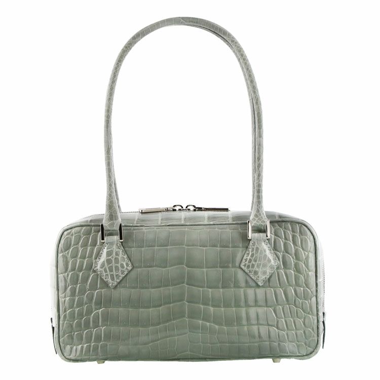 ナイルクロコダイルが美しく輝くエレガントなハンドバッグ。