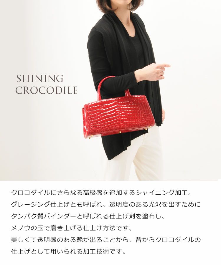 他の画像を見る exotic leather クロコダイル ハンドバッグ シャイニング 加工 目地染め 日本製 / レディース 『クロコダイル保証書付き』 4FA ¥ 253,000 税込 (0件) お気に入りに登録する