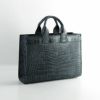 ブラックカラーをベースに様々な加工を施した、クロコダイルトートバッグ。
