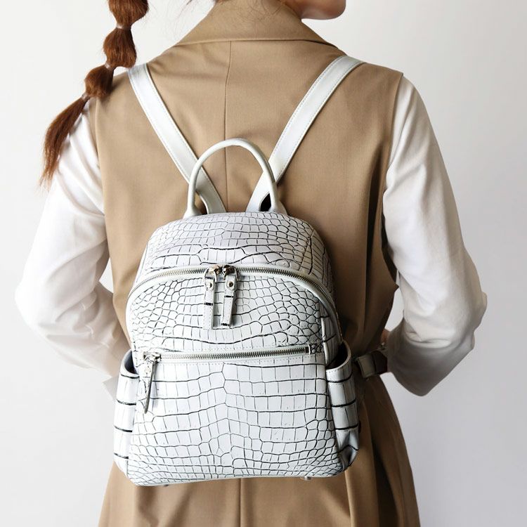 よくあるリュックサックのデザインでも、素材をクロコダイルにすることで特別感のあるリュックサックに。