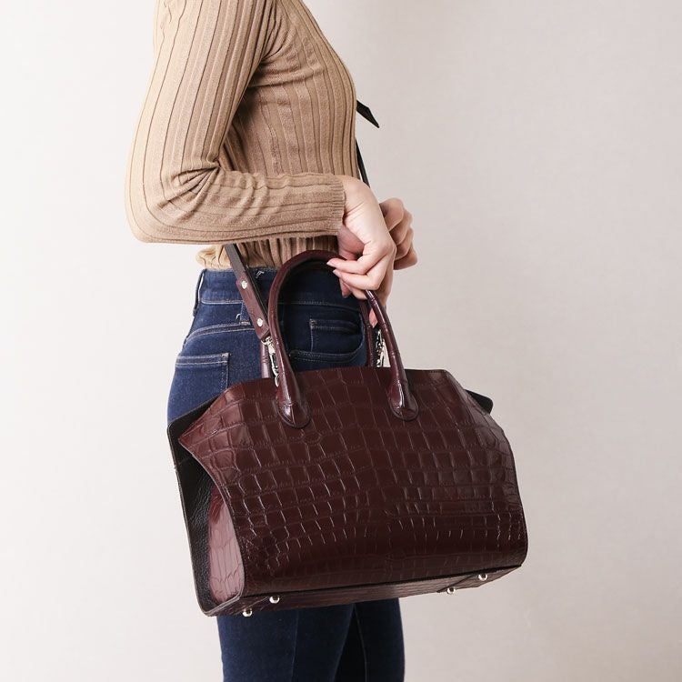 天然皮革 エキゾチックレザー クロコダイル ハンドバッグ センター取り マット 加工 2WAY ショルダーベル付き 日本製 4FA 保証書 付き プレゼント ギフト 鰐革 本革 女性 JRA 大きめ ladiesbag