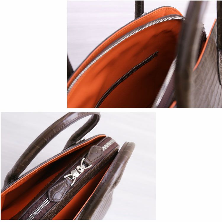 クロコダイルの腹部の革をバッグの中央に配したセンター取りで、腑模様がまるで左右対称のように美しく並んでいます。