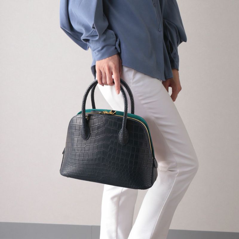 フランスのタンナーの元で鞣されたナイルクロコダイルの腹部の革をセンター取りで使用しています。