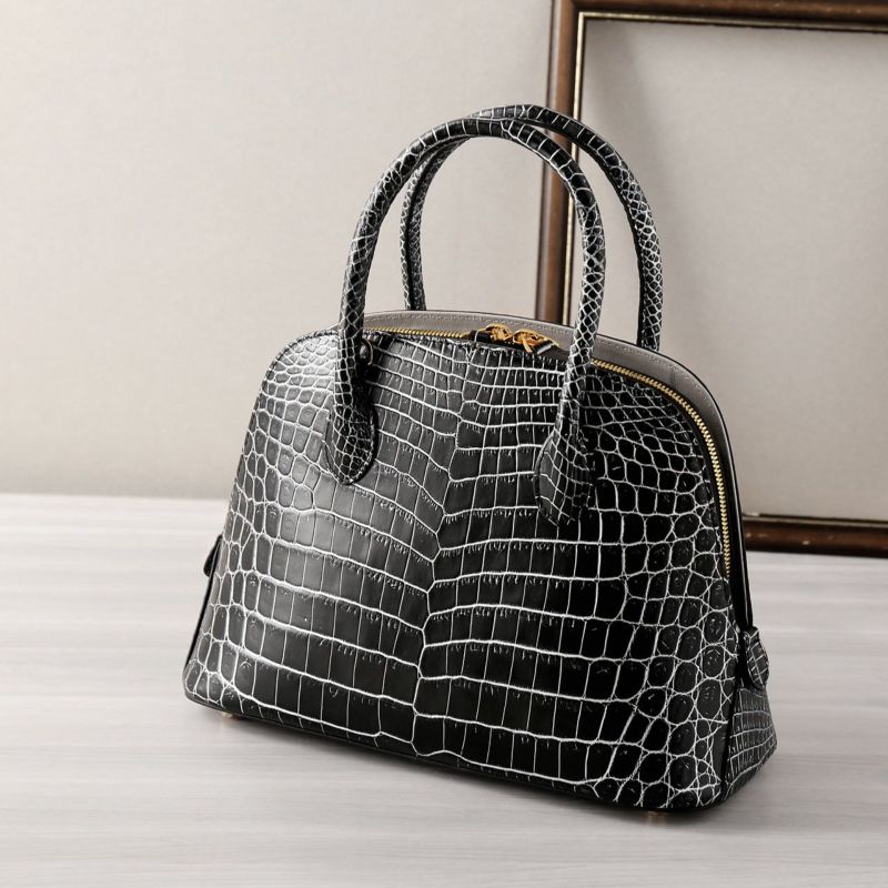 クロコダイル ハンドバッグ センター取り 2WAY ショルダーベルト付き 両開ファスナー あおりポケット付き マット 加工/目地染め 4FA 保証書 付き プレゼント ギフト 鰐革 本革 女性(06001756r)