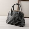 天然皮革 エキゾチックレザー クロコダイル ハンドバッグ センター取り 2WAY ショルダーベル付き 両開ファスナー あおりポケット付き マット 加工/目地染め プレゼント ギフト 鰐革 本革 女性 ladiesbag