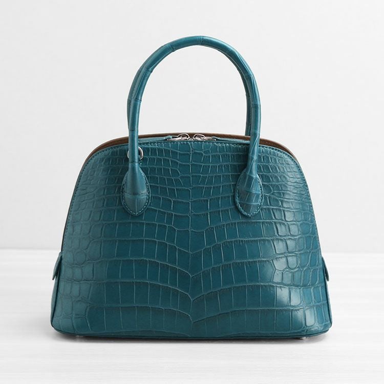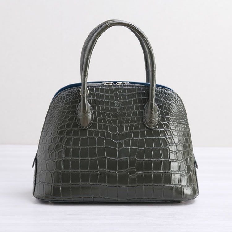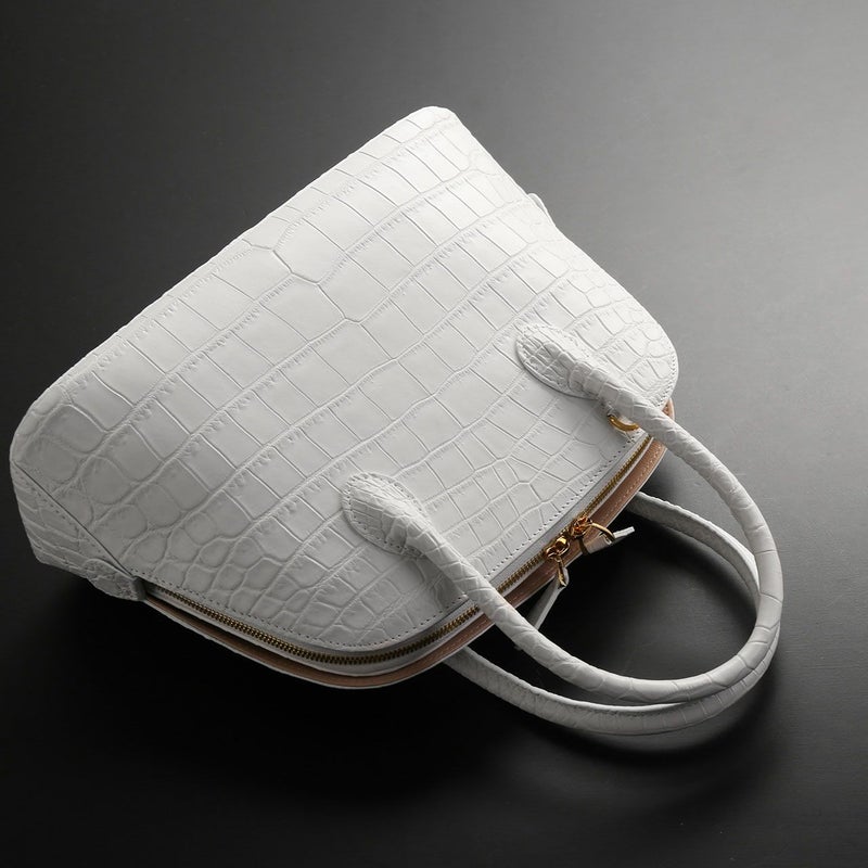 クロコダイル ハンドバッグ センター取り 2WAY ショルダーベルト付き 両開ファスナー あおりポケット付き マット 加工/目地染め 4FA 保証書 付き プレゼント ギフト 鰐革 本革 女性(06001756r)