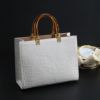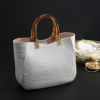 ホワイトカラーのクロコダイルに、べっ甲調のハンドルとゴールド金具を使用。