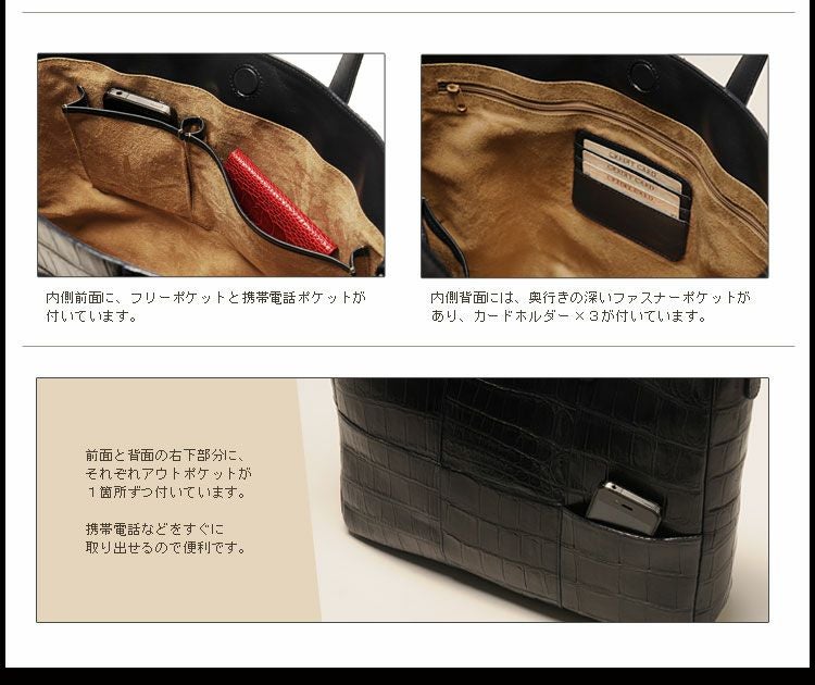 クロコダイル トートバッグ マット加工 2WAY / メンズ レディース 『クロコダイル保証書付き』 4FA