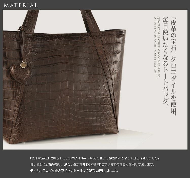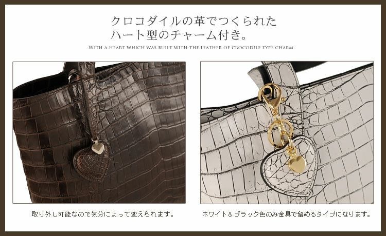 クロコダイル トートバッグ センター取り マット加工 ハート型チャーム付き (No.06000283) |