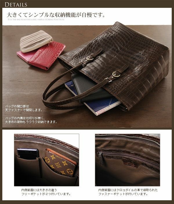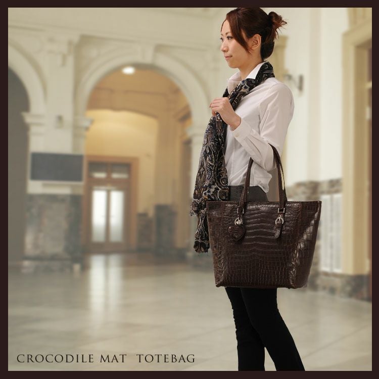 クロコダイル トートバッグ センター取り マット加工 ハート型チャーム付き(No.06000357) |