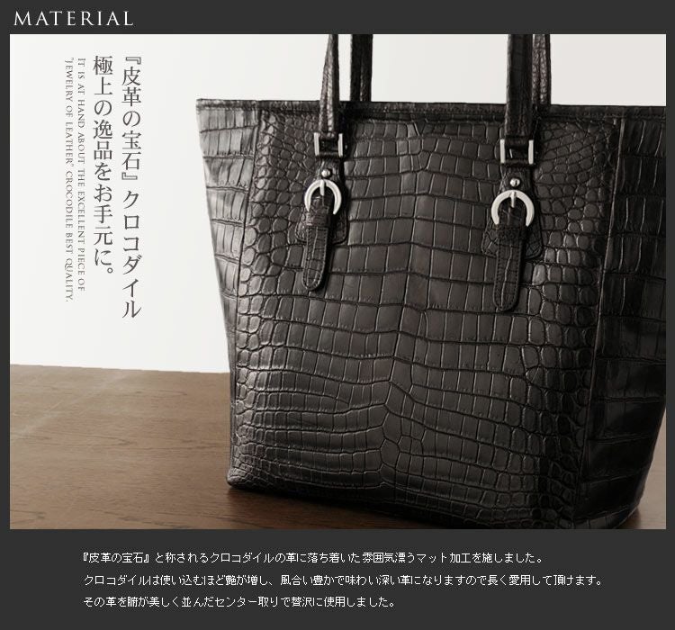 クロコダイル トートバッグ センター取り マット加工 ハート型チャーム付き 『クロコダイル保証書付き』 4FA