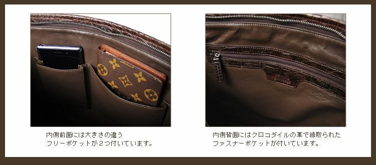 ・ファスナーポケットの周りにはクロコダイルの革を使用。