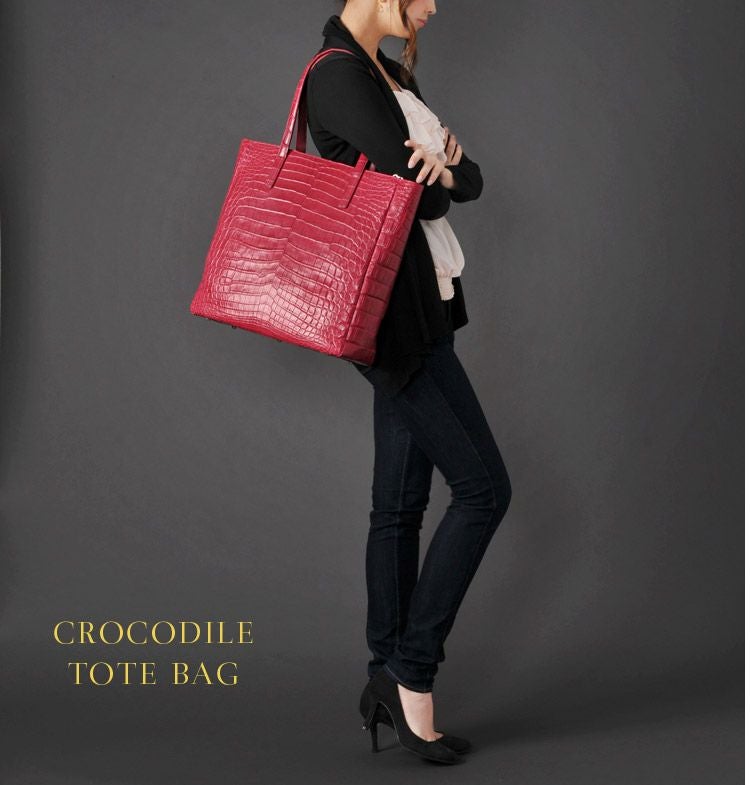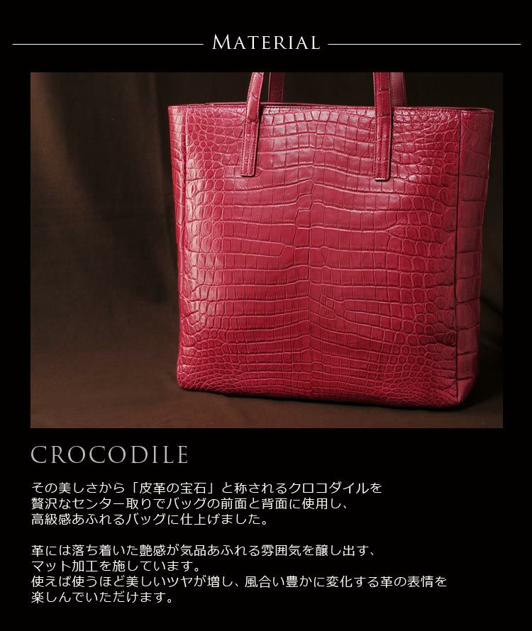 天然皮革 エキゾチックレザー クロコダイル トートバッグ レディース マット加工 両面 センター取り 本革 レザーバッグ ルビー A4 ワニ革 本革 安心 保証書 付き プレゼント 母 女性 ギフト ladiesbag