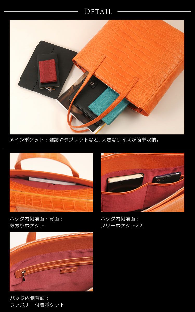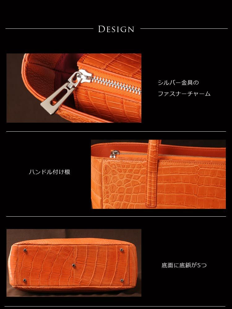天然皮革 エキゾチックレザー クロコダイル トートバッグ レディース マット加工 両面 センター取り 本革 レザーバッグ オレンジ A4 ワニ革 本革 安心 保証書 付き プレゼント 母 女性 ギフト ladiesbag