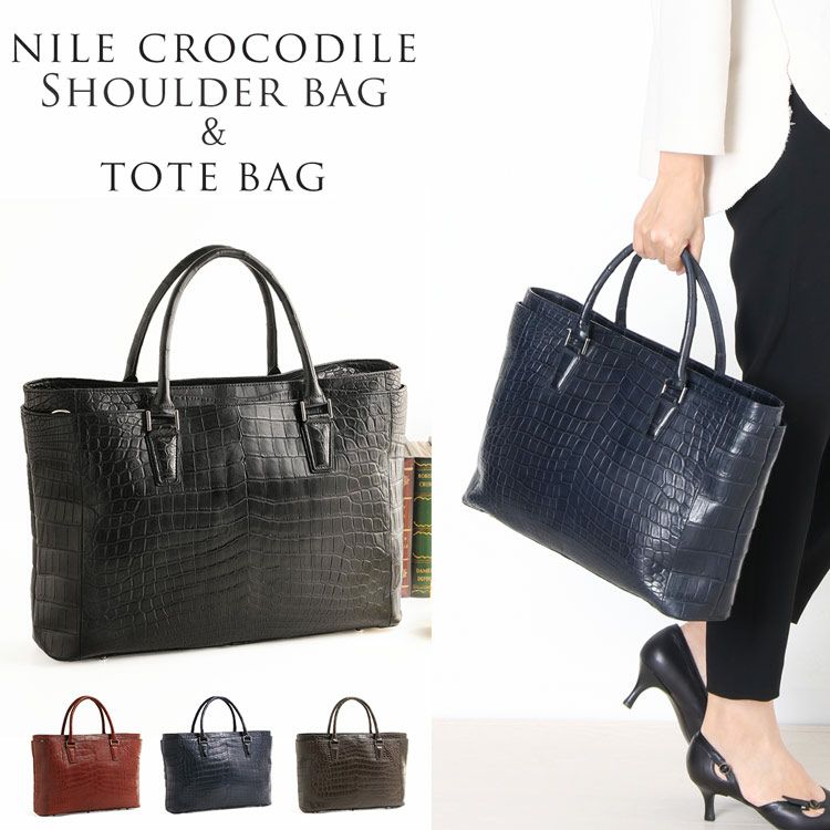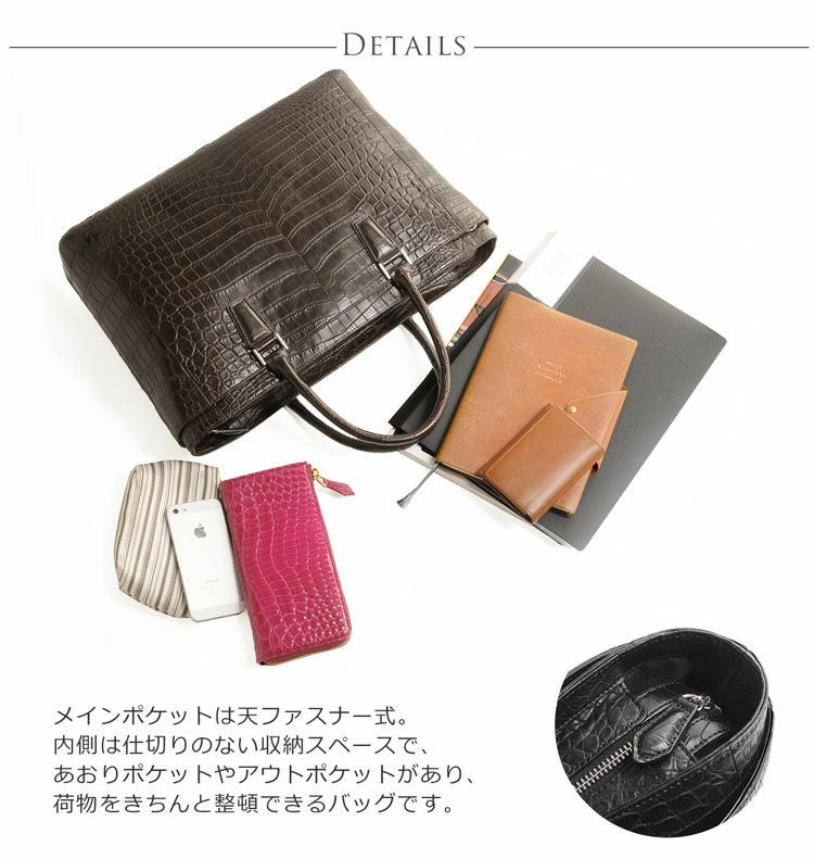 天然皮革 エキゾチックレザー クロコダイル マット加工 トートバッグ A4サイズ対応 レディース ブラック/ネイビー/ダークブラウン/ダークレッド 仕事 通勤 ビジネス デイリー 安心 保証書 プレゼント ギフト ladiesbag