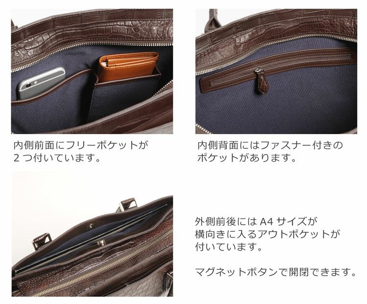 | 商品名:クロコダイル マット加工 トートバッグ A4サイズ対応 レディース |