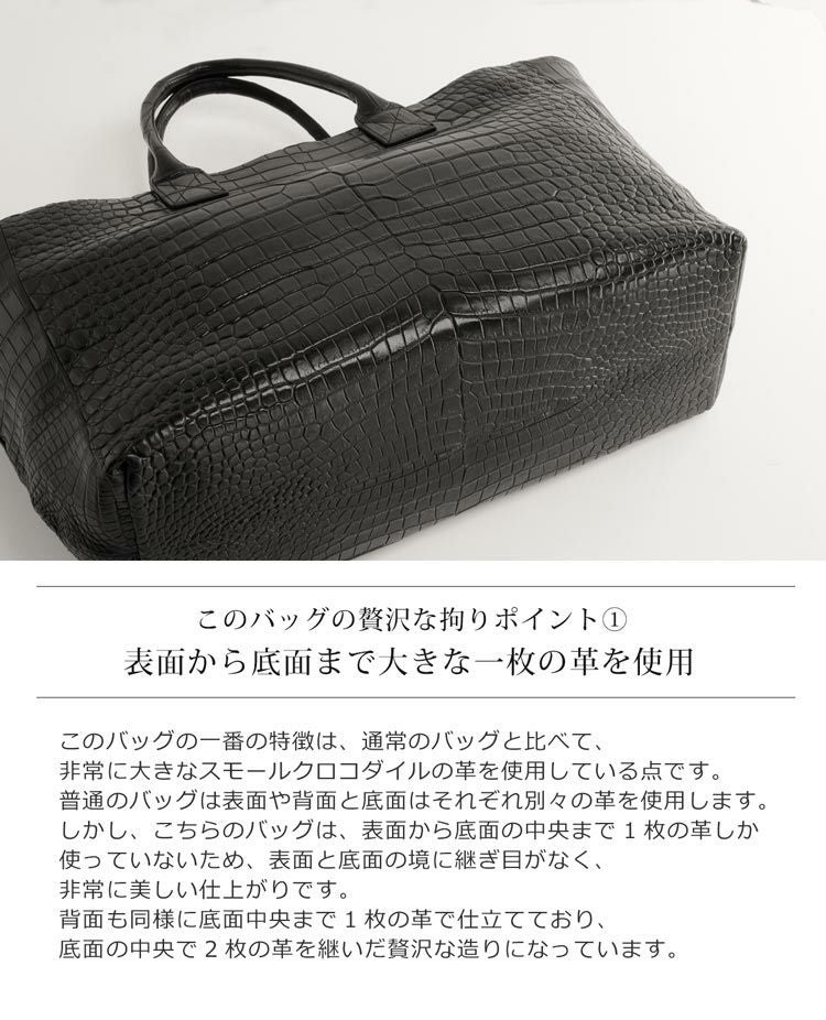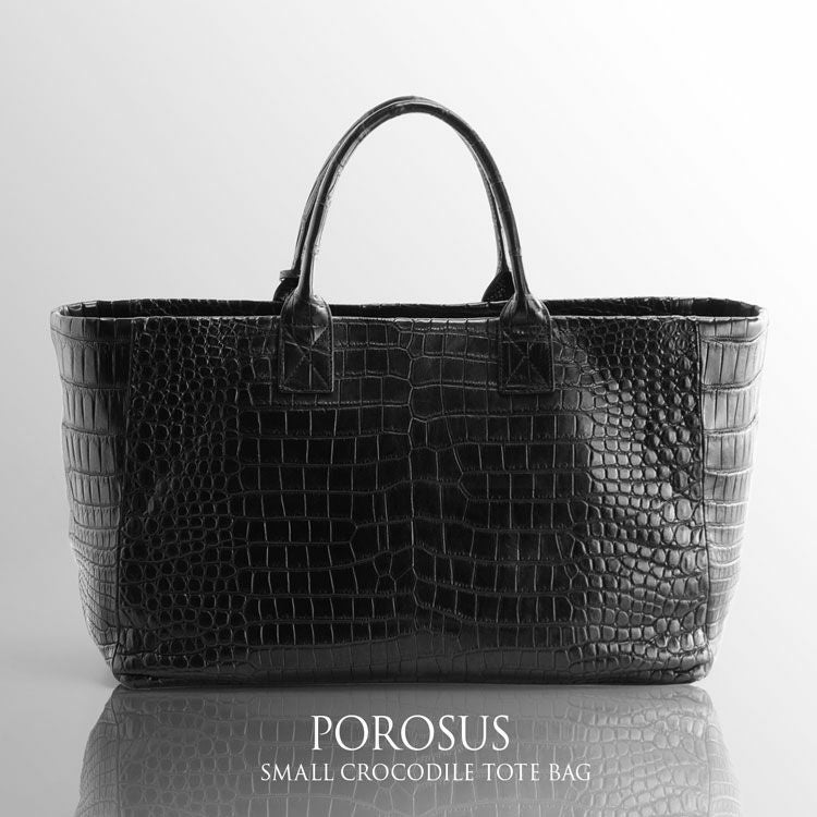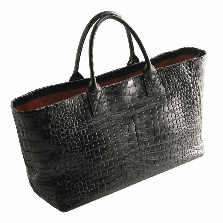 スモールクロコダイルで仕立てた大きなトートバッグ。
