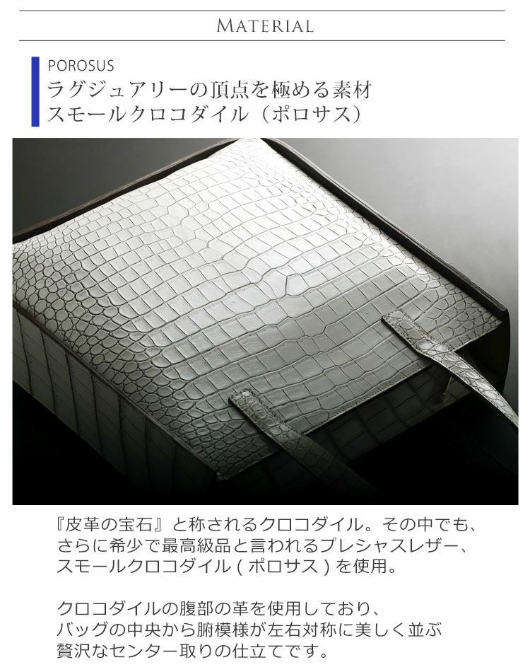 | 商品名:スモール クロコダイル トートバッグ 縦型 日本製 センター取り A4サイズ対応 JRA |