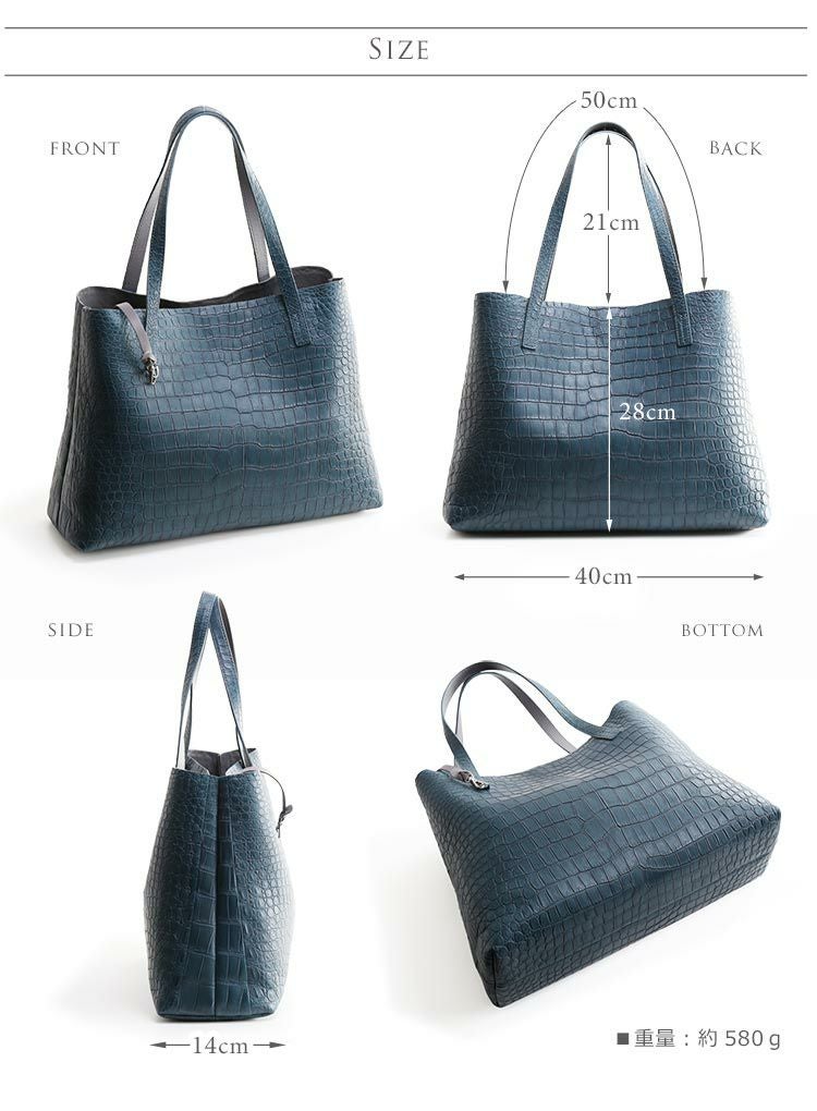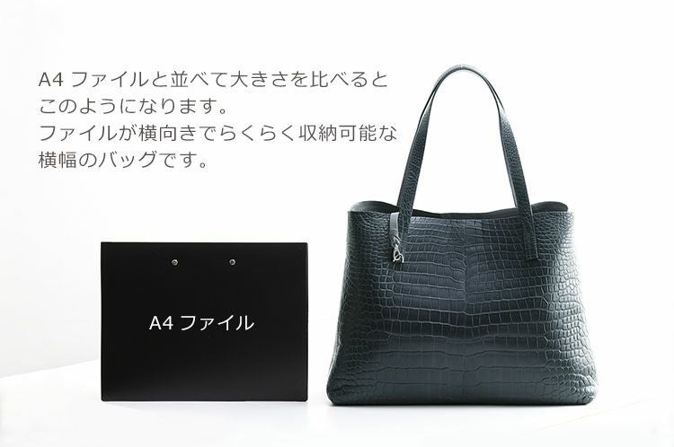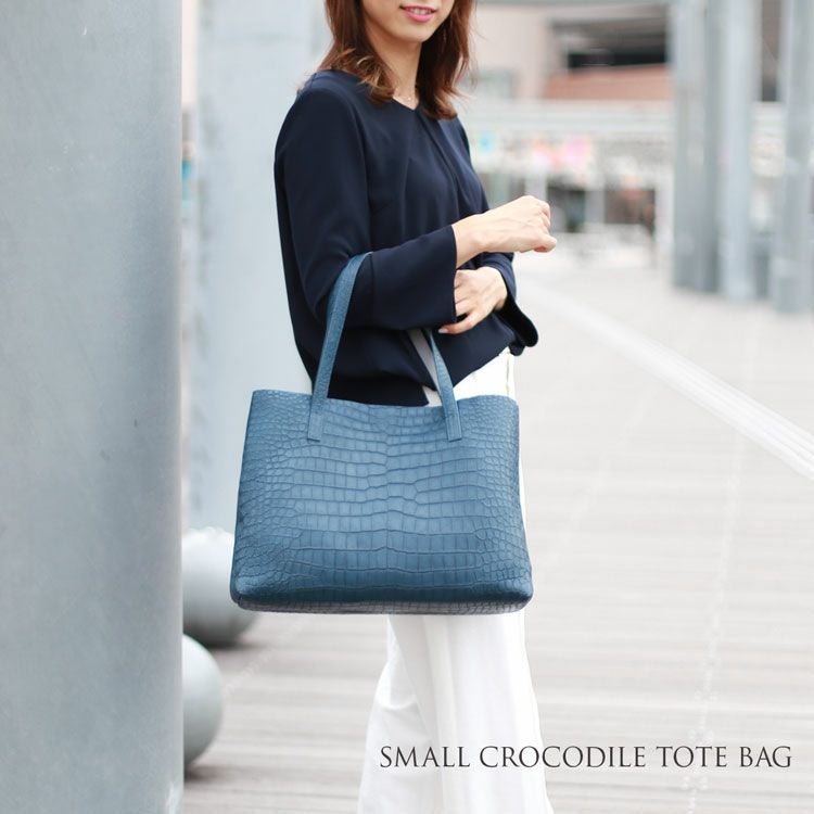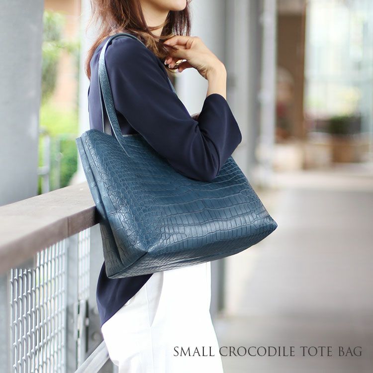 スモールクロコダイルを大きなサイズで使用したトートバッグ。