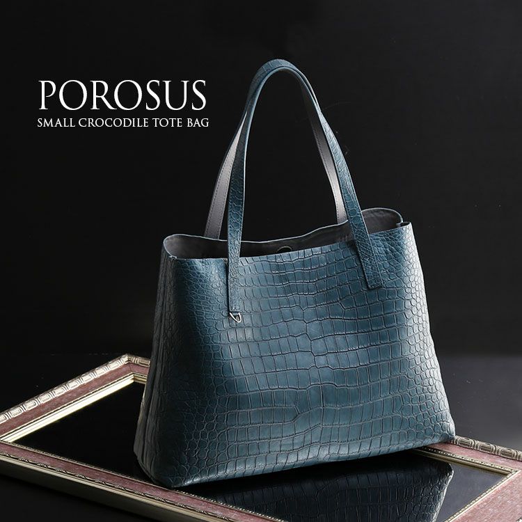 天然皮革 エキゾチックレザー スモールクロコダイル トートバッグ レディース センター取り ポーチ付き 軽量 A4 全5色 ポロサス ブルー グリーン ネイビー ダークブラウン ブラック 肩掛け 通勤 プレゼント ギフト ladiesbag