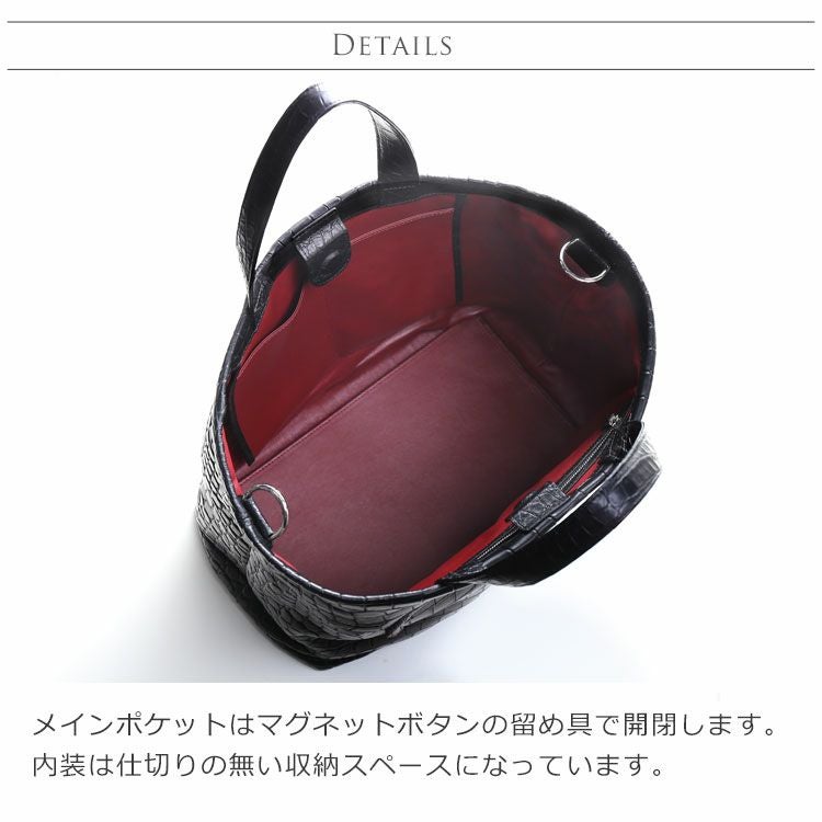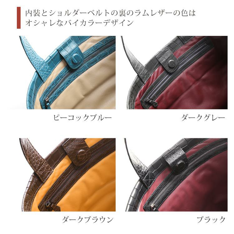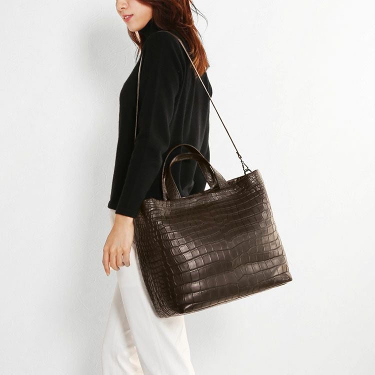 肩掛け可能な2WAYトートバッグ スモールクロコダイル レディース