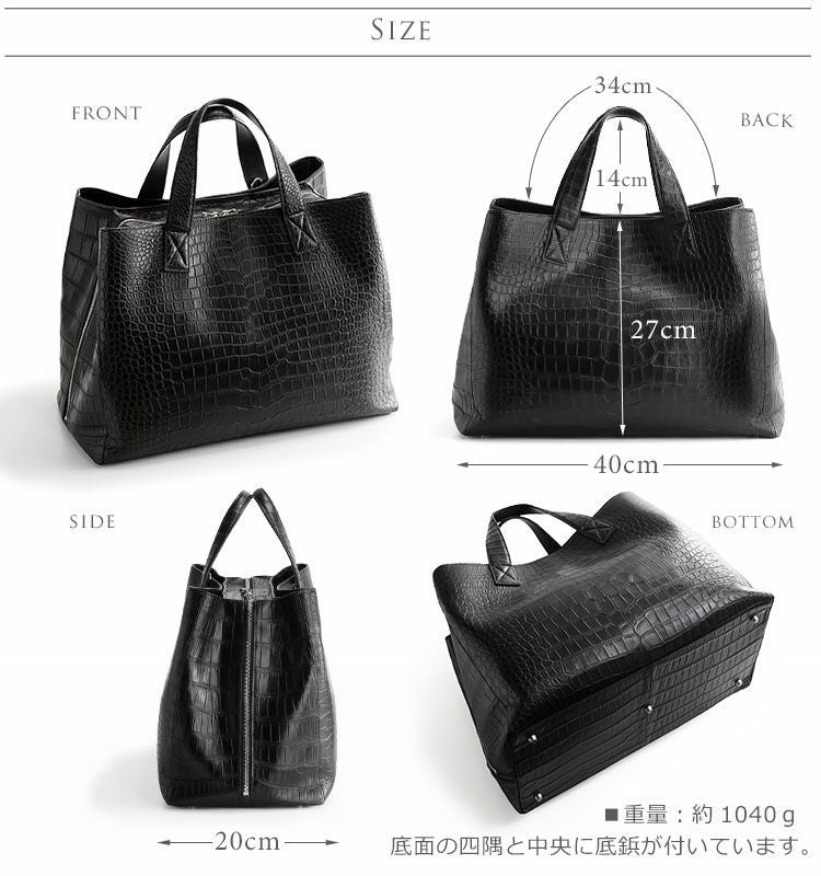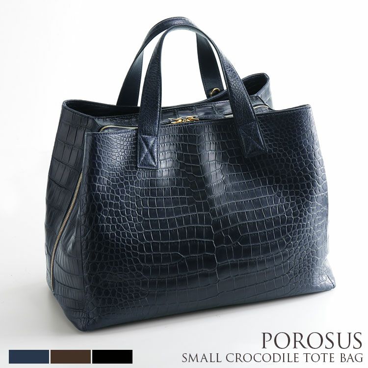 天然皮革 エキゾチックレザー スモール クロコダイル レディース トートバッグ センター取り 大容量 2WAY 仕様 ラウンドファスナー ポロサス ネイビー/ダークブラウン/ブラック 安心 保証書 付き ギフト 本革 A4対応 ladiesbag mensbag
