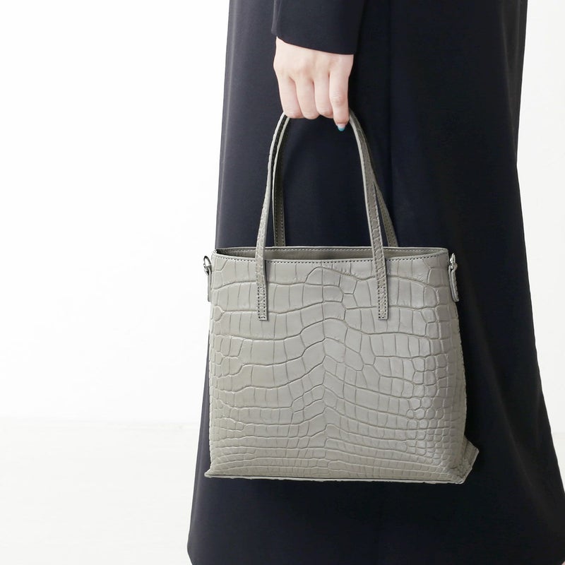 さりげなく使えるサイズのクロコダイルミニトートバッグ