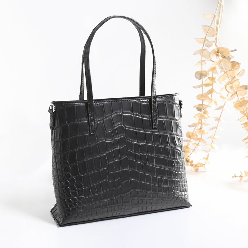 小ぶりサイズで可愛く綺麗に持てるクロコダイルミニトートバッグ。