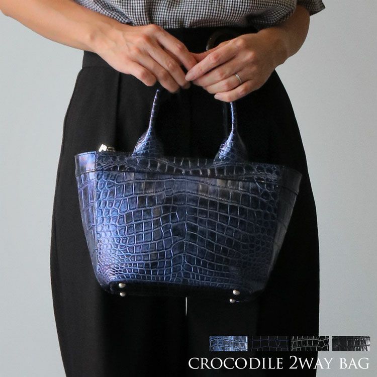 クロコダイル ミニトートバッグ レディース 日本製 本革 ショルダー 2WAY 紳士 手提げ 肩掛け 斜め掛け 安心 保証書 付き 国産 JRA 高級 鰐革 わに革 小さい ギフト プレゼント 4FA (06001927r)