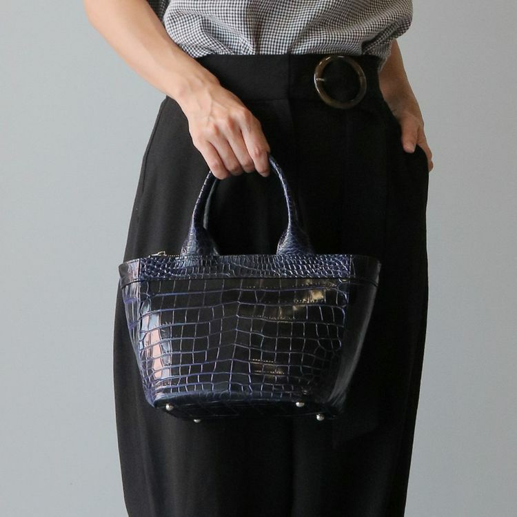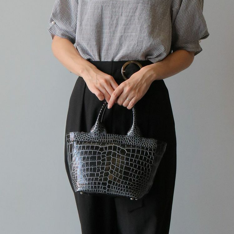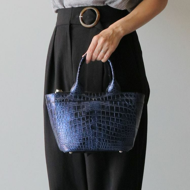 エレガントに持てるコンパクトなサイズのクロコダイルハンドバッグ。