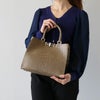留め具を閉めればハンドバッグ風に、閉めずに使えばトートバッグ風に使えます。